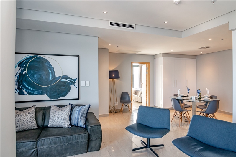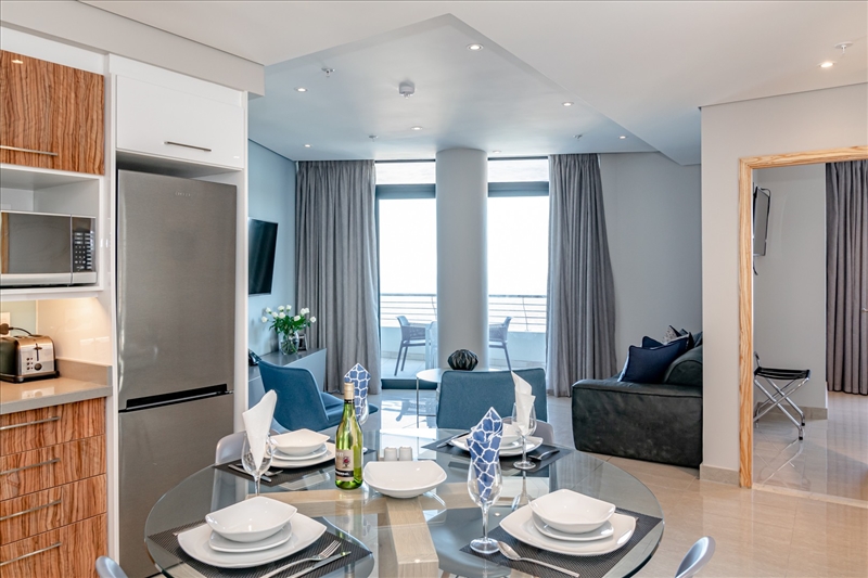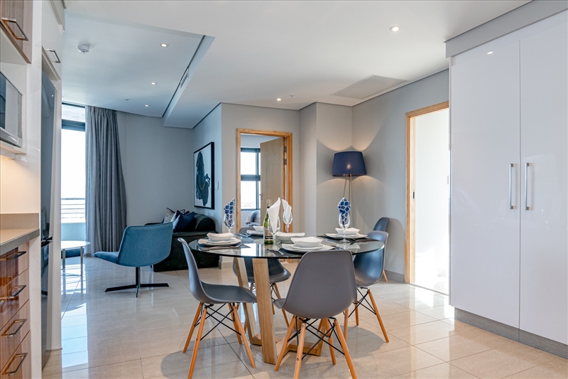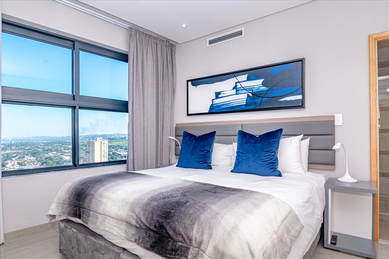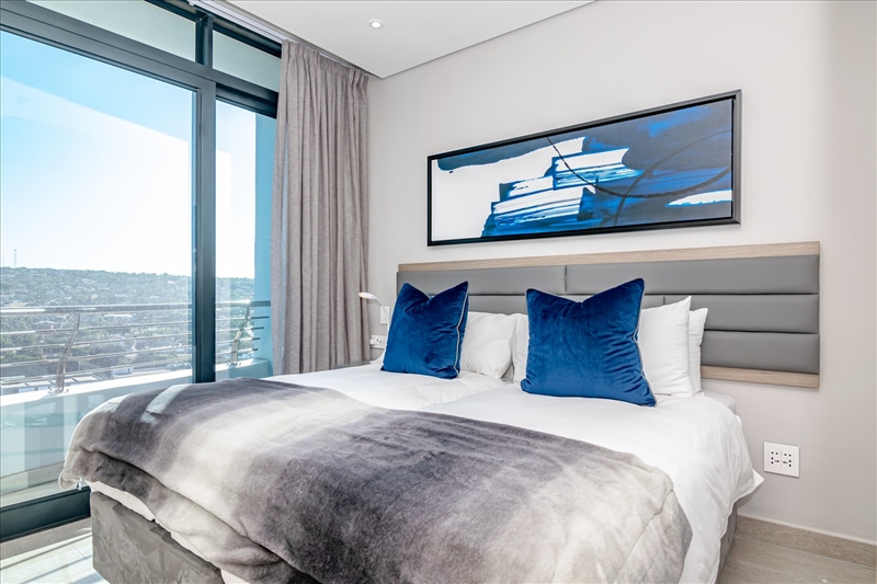 This is an amazing 2 Bedroom 2 Bathroom En-suite Apartment which offers great value for money - price includes VAT (no Transfer Duty payable). The main Bedroom comes with a bath and shower, whilst the 2nd Bedroom opens onto a balcony. The open-plan living area is modern and leads onto a 14m2 balcony with shoreline sea views toward the City of Durban over the Umhlanga/La Lucia area offering spectacular views day and night. The kitchen comes fitted with a SMEG hob and under-counter oven.