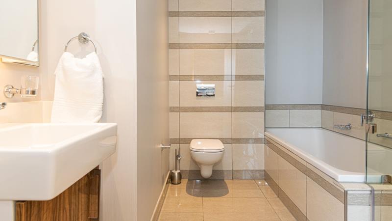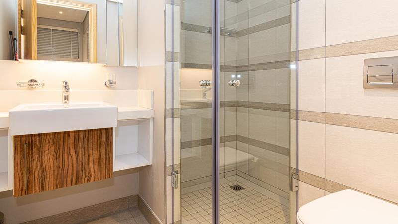 The spacious living area seamlessly flows onto a balcony, offering additional space for relaxation and entertainment. The main bedroom in this 2 bedroom layout features ample storage space with extra cupboards, while the bathroom is equipped with both a bath and shower for your convenience.