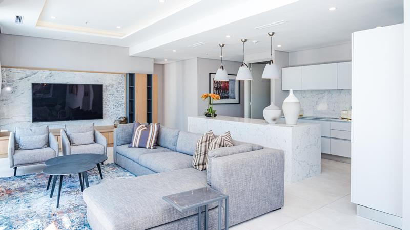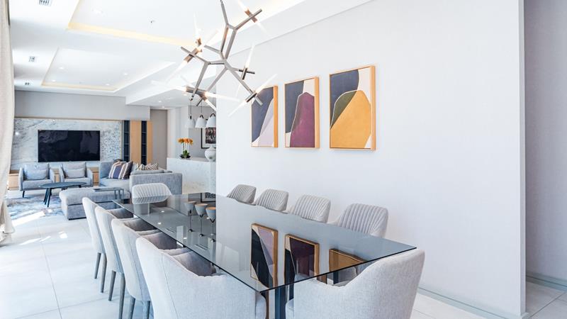 Turn the key, open the door and allow yourself to discover the best of the best in Pearls of Umhlanga. This apartment is unique and one of a kind, specifically designed, keeping in mind the discern buyer with an acquired taste. The attention to interior and spatial design with no expenses spared is everything you've been looking for in this 4 Bedroom 4 Bathroom apartment. The bedrooms are spacious, have high ceilings and are separately air-conditioned. There is certainly enough cupboard space. If there is a room that deserves a little luxury it's the bathroom. The straight clean lines, uncluttered counter spaces and modern design define all the bathrooms in this apartment. The open plan kitchen suits today's informal lifestyle providing a natural hub for the home and greater sociability during cooking and prepping. The living area and twelve seater dining room area opens onto a 104m2 balcony with outdoor cinema room and juice bar from where one can see the warm Indian Ocean. The stacking doors opens the living areas and the inside merge with the outside into one big space which is ideal for entertaining. Easy access to resort type communal pool area, the Pearls Mall and the Umhlanga beach and promenade gives this apartment a ten out of ten in every aspect. Price Includes VAT and all the furniture. Call us to view