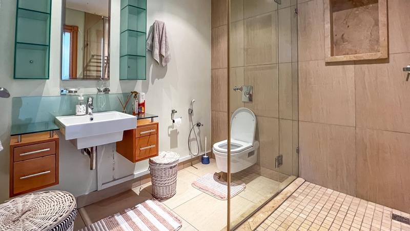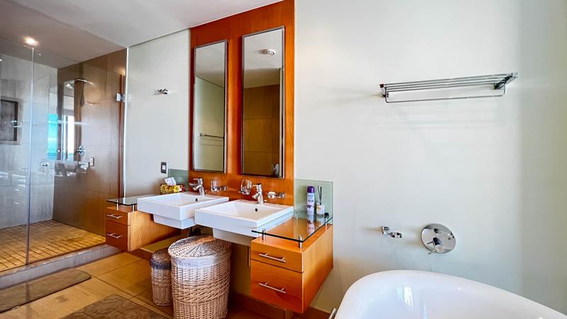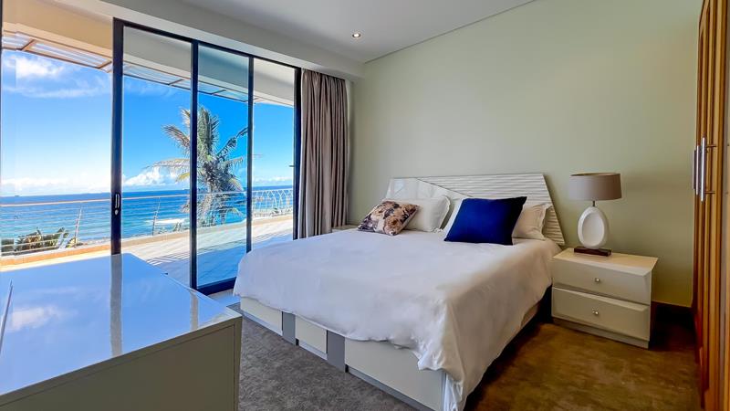 The main bedroom is a true sanctuary, featuring a private balcony that offers breath taking beach views and a tranquil escape from the hustle and bustle of everyday life. It also boasts an en-suite bathroom complete with a double basin, urinal, shower and a beautiful tub, allowing you to unwind and relax after a long day.