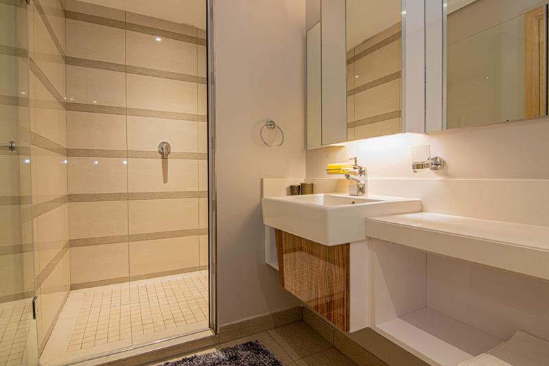 The en-suite bathroom adds a touch of luxury to the apartment, featuring a modern shower and ample vanity space for your convenience. This well-designed layout ensures that every inch of the apartment is optimized for ease of living, providing both comfort and style.