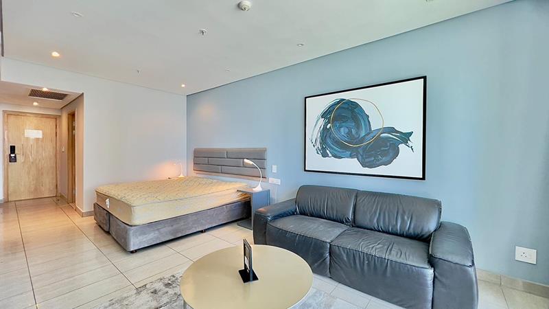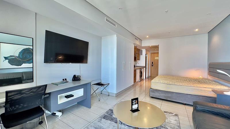 Step inside and experience a seamless flow of space, where floor-to-ceiling windows frame the panoramic Indian Ocean, filling the apartment with natural light. The open-plan layout boasts a sleek, contemporary kitchen, fully equipped with premium appliances, while the living and sleeping areas blend seamlessly to create an inviting and tranquil atmosphere. A well-appointed bathroom adds to the refinement, offering a spa-like escape after a long day.