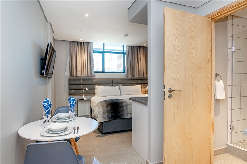 Experience the perfect blend of comfort and convenience with this fully furnished self-catering hotel room, designed specifically for the busy executive. This accommodation option features a well-equipped kitchenette and a private bathroom, providing all the essential comforts of home. While there are no sea views, the room offers a fully air-conditioned environment complete with a TV for your entertainment needs.