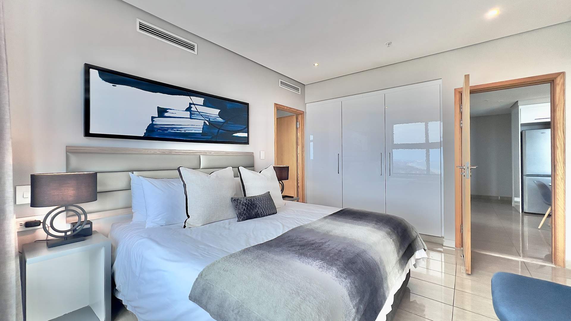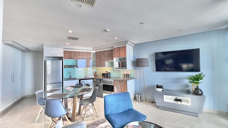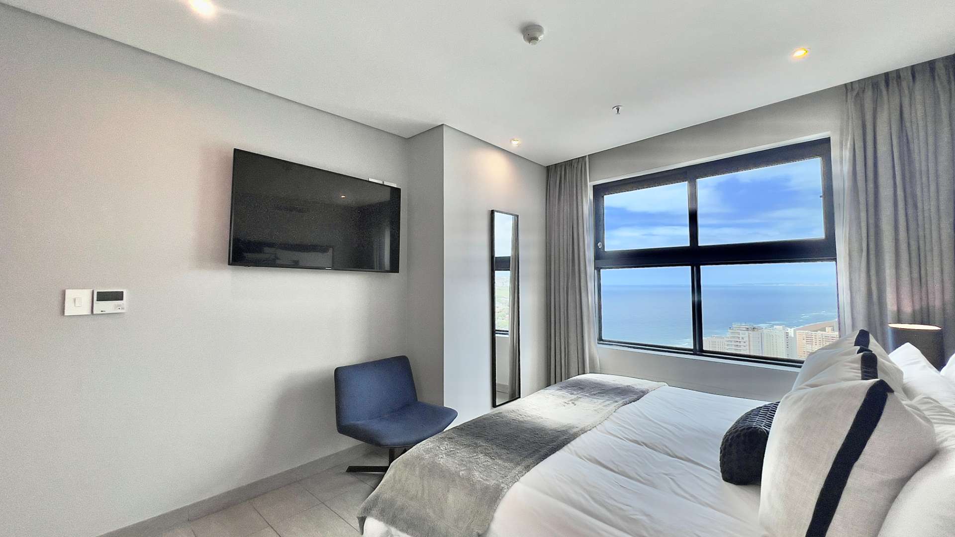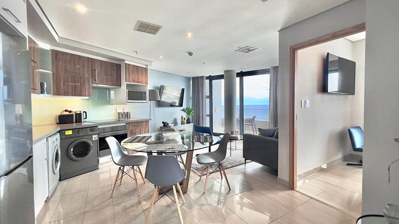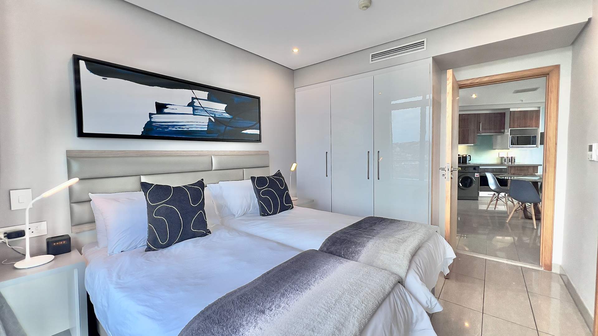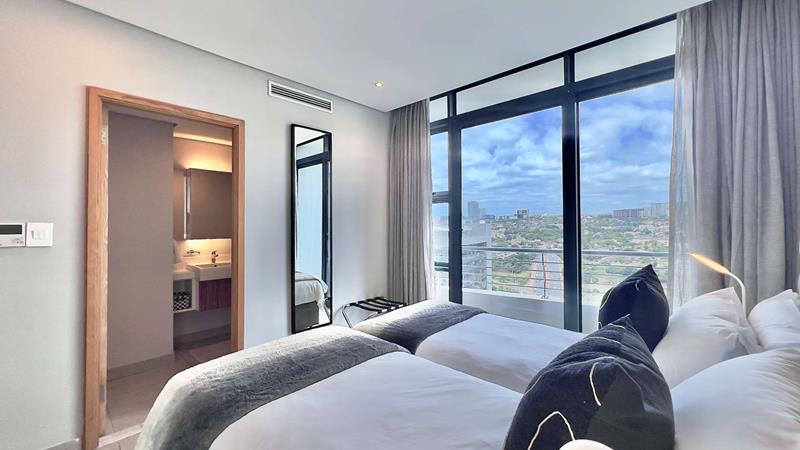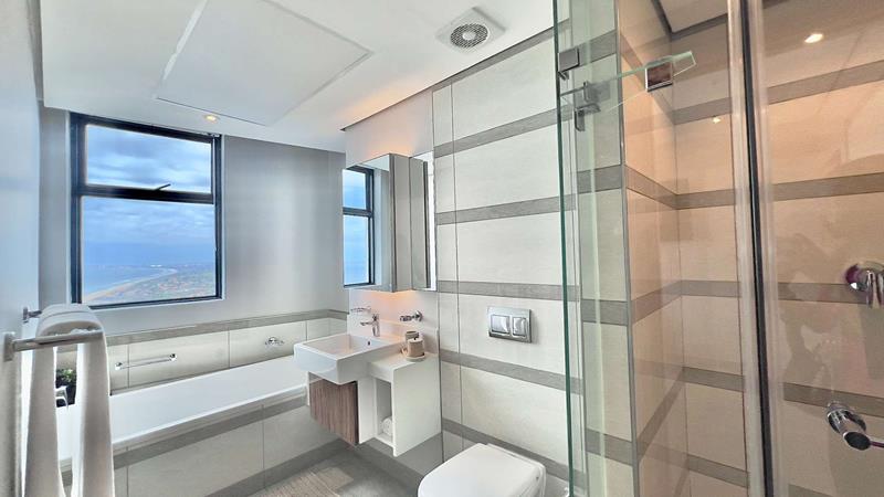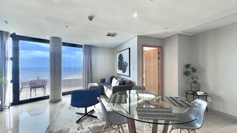 Large sliding doors lead from the living area onto a balcony that has enough space for an outdoor dining setup. From here, you can take in spectacular sea views along with sweeping views over Umhlanga, creating a great setting for morning coffee or evening meals. The indoor-outdoor connection allows plenty of natural light to fill the apartment and adds to the sense of space.