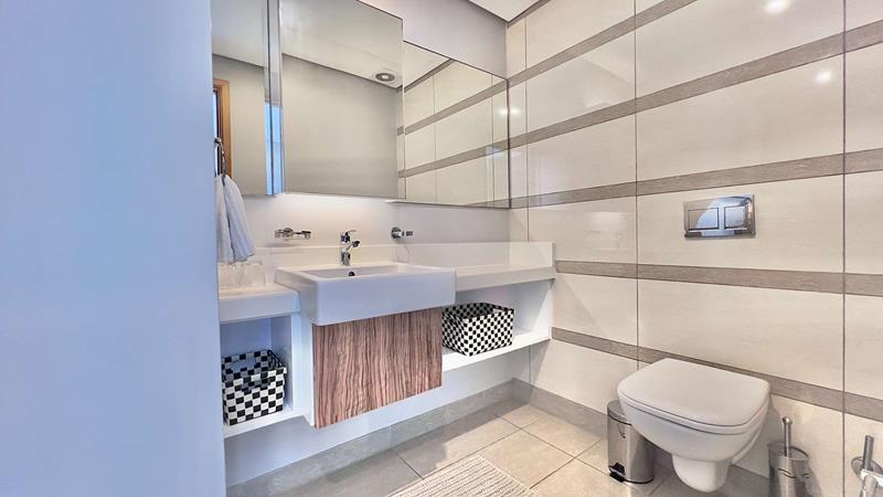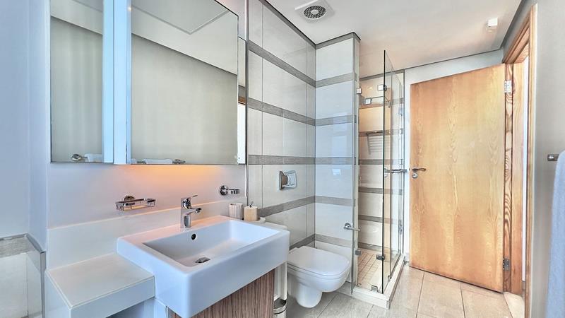 Both bedrooms are en-suite, offering privacy and comfort for residents and guests. The main bedroom features both a bath and shower, while the second bedroom is fitted with a shower. With its well-balanced layout, generous outdoor space, and scenic views, this apartment offers a relaxed coastal lifestyle in a highly desirable location.