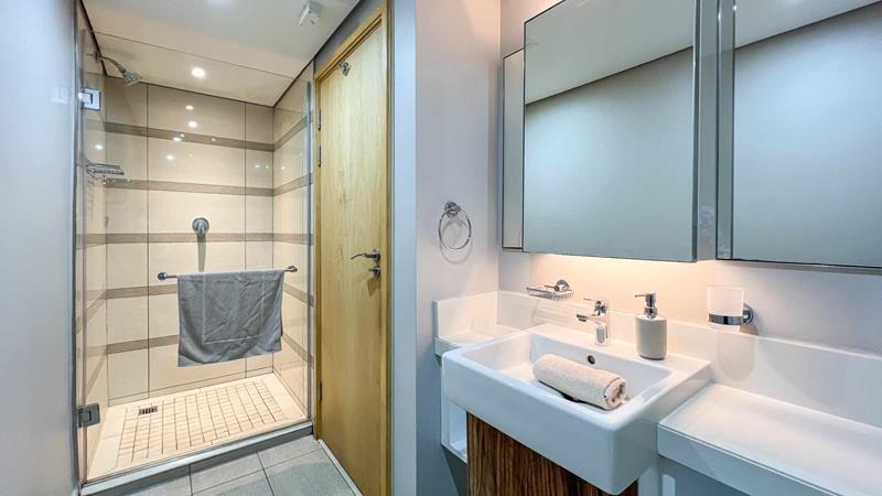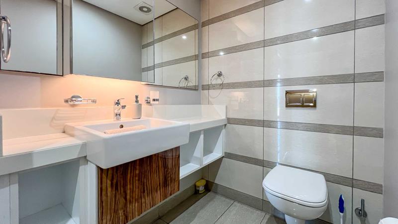 The main bedroom is a true sanctuary, providing direct access to a private balcony. It features a luxurious en-suite bathroom with high-end fixtures and a spacious shower. The second bedroom is generously sized and provides easy access to the second bathroom, which boasts modern amenities and stylish finishes.